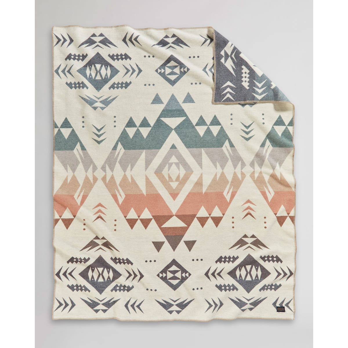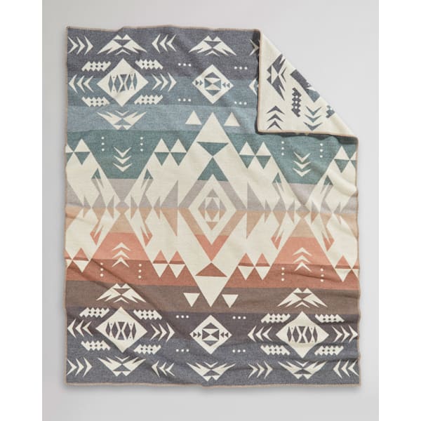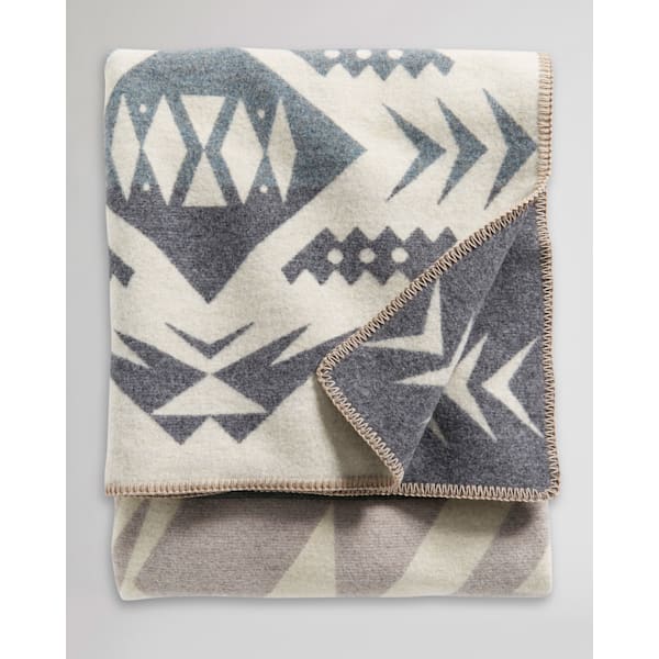 Patterned after the coveted agates found by lucky beachcombers along a stretch of the Central Oregon Coast—a half day’s drive from Pendleton, where this wool blanket is made. In this design, striated stones tumble from the ocean onto a sandy shore, waiting for discovery by those with a discerning eye. Reverses for two distinct looks.