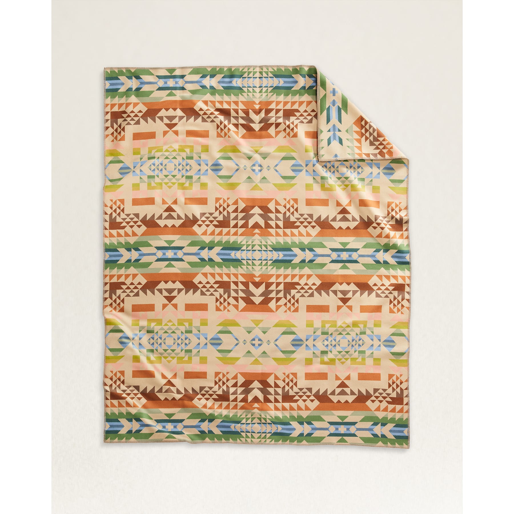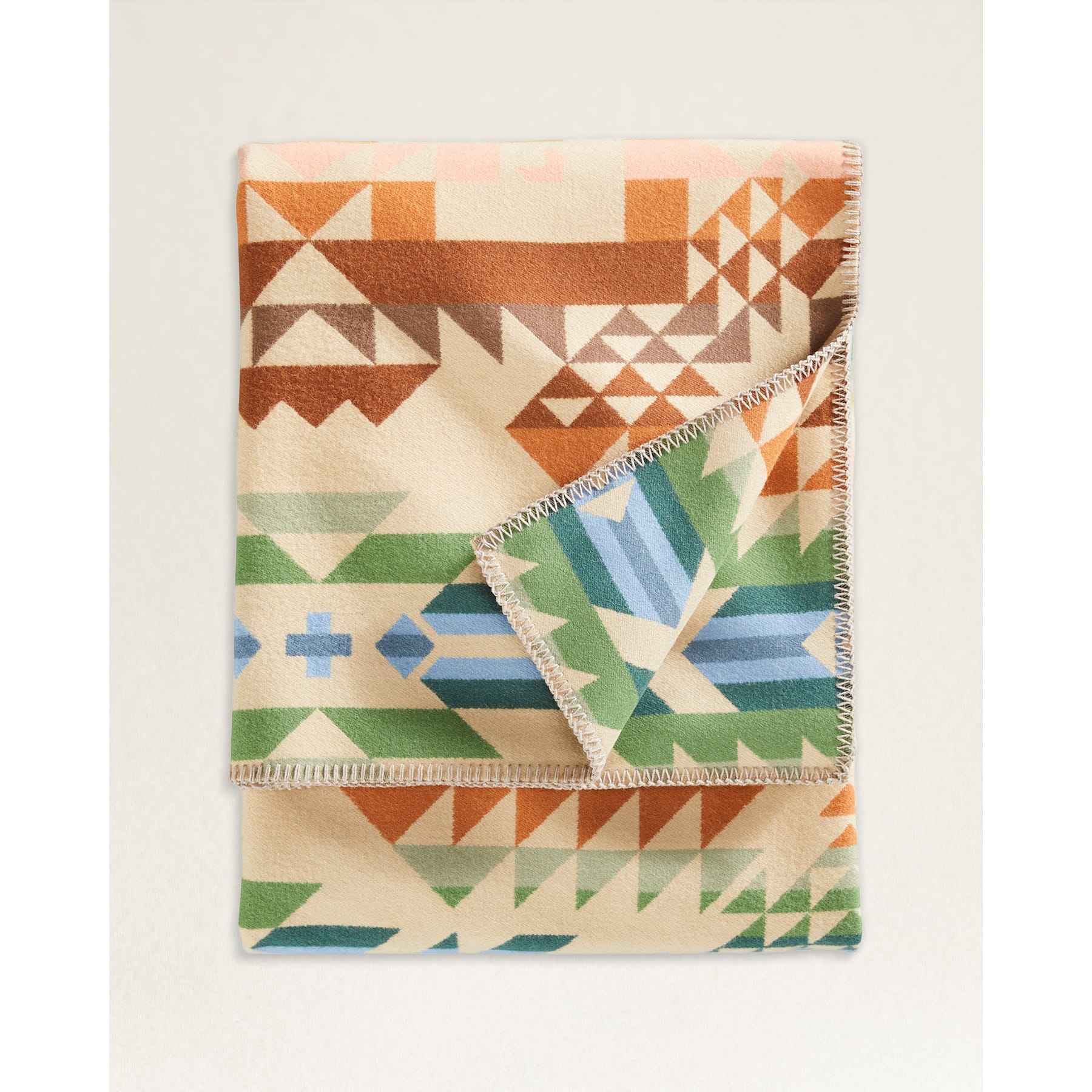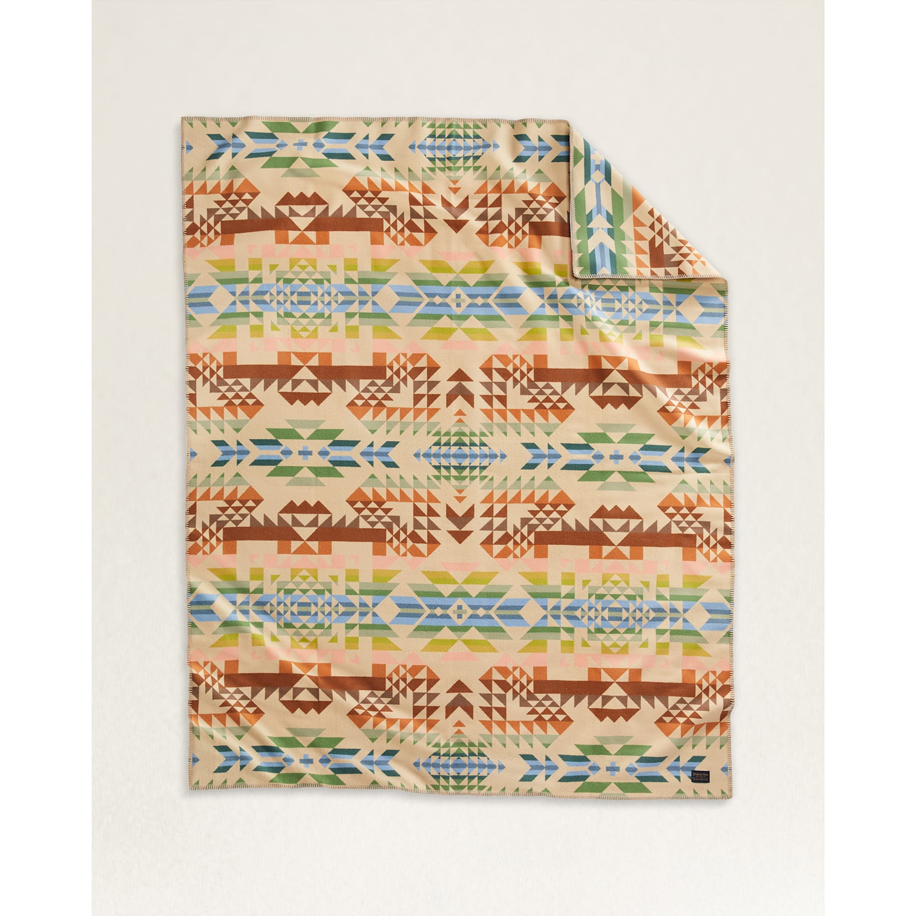 Early travelers to Oregon found a natural spring full of jewel-like stones, which they named Opal Springs. This pattern uses a quilt-like arrangement of shapes to show the movement and beauty of those stones—naturally polished agates—churning in fresh spring water. Expertly loomed, dyed and woven of pure virgin wool in our Pendleton, Oregon, mill, in a double-sided design for two different looks.