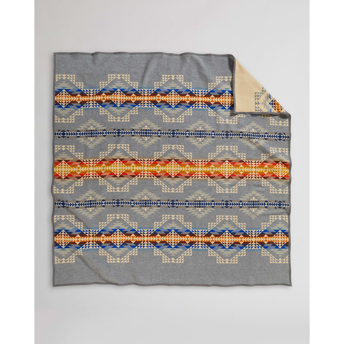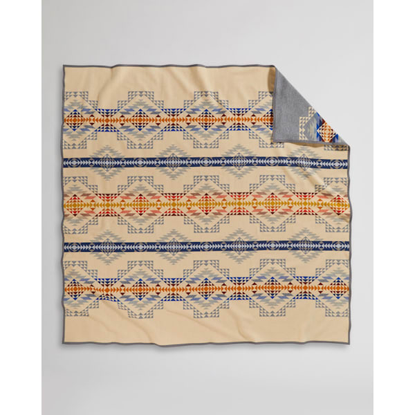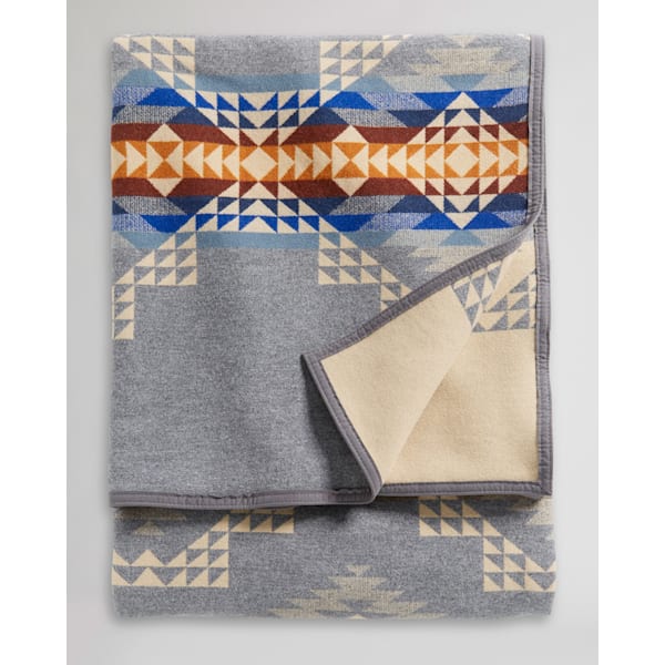 This wool blanket design echoes the towering rock face, geometric peaks, deep water canyons and hiking trails of Smith Rock State Park in Central Oregon—considered by many to be the birthplace of American sport climbing. Crafted to last a lifetime, this blanket is made just 200 miles away from Smith Rock, in our Pendleton, Oregon, mill. Reverses for two different looks.