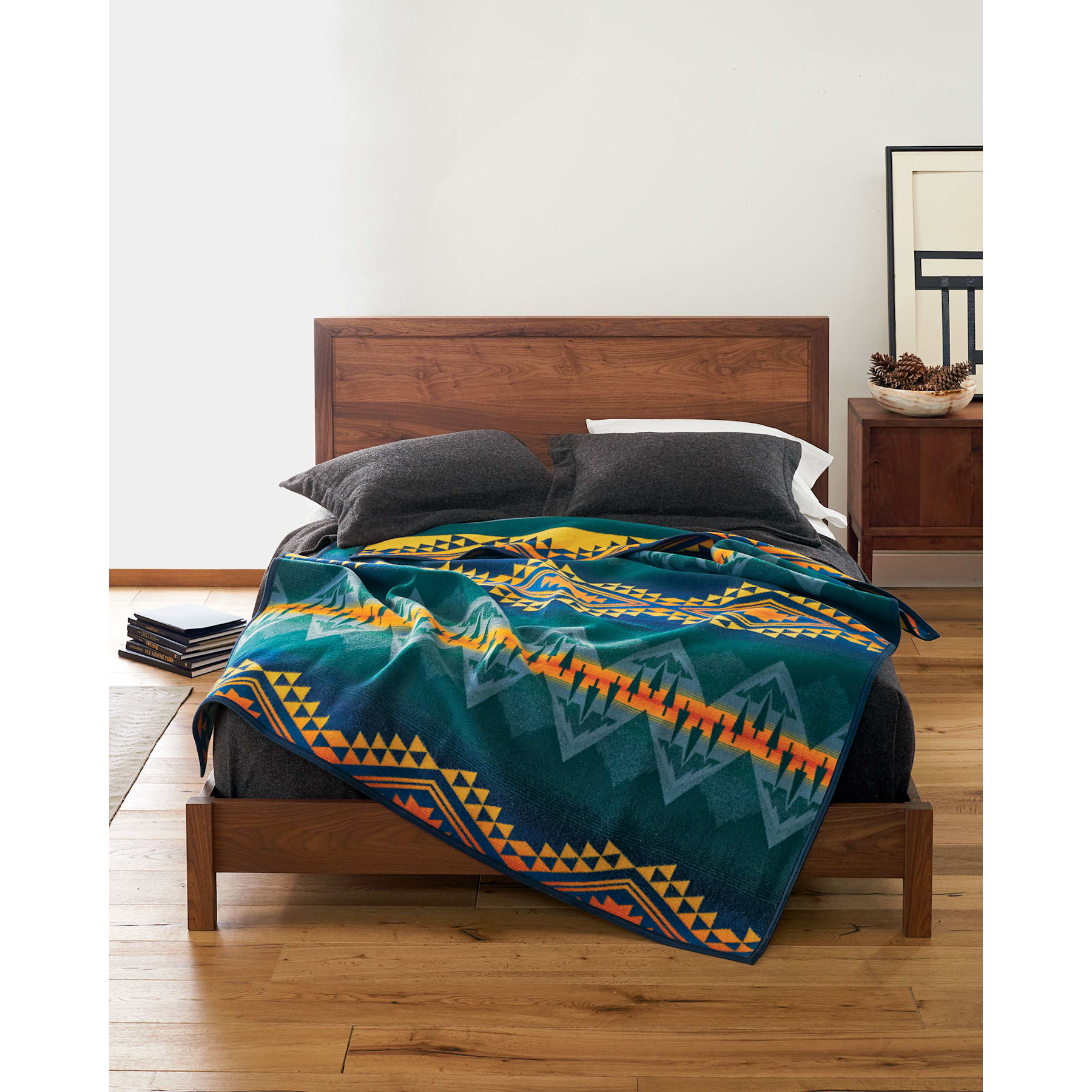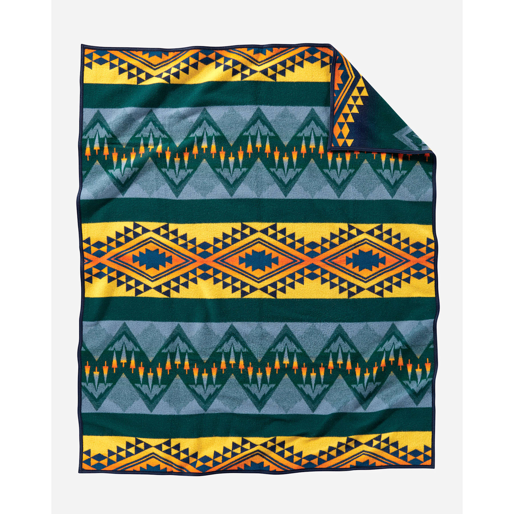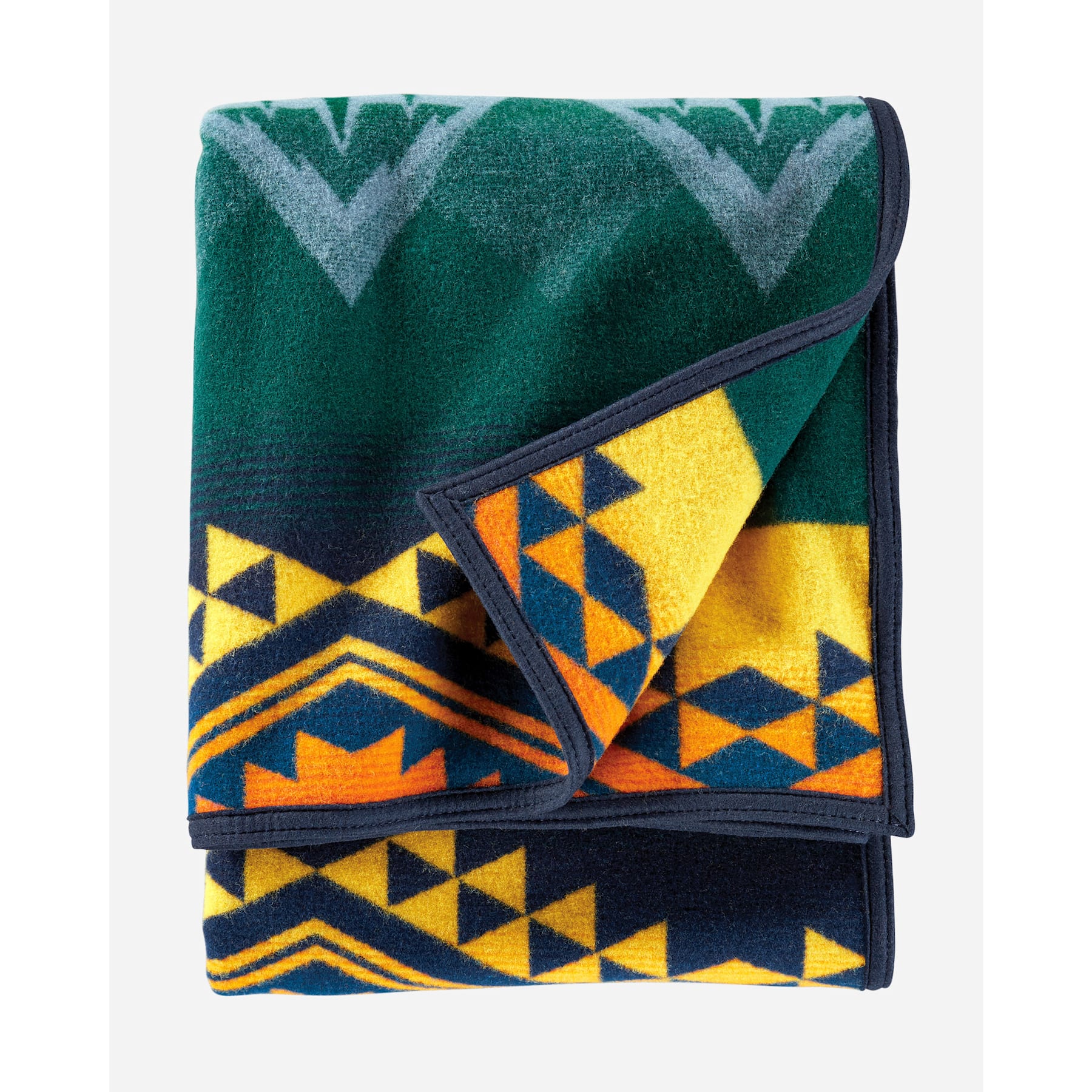 In this tribute to our nation’s wildland firefighters, bands of deep forest alternate with lines of flame. A portion of sales from this wool blanket helps to support the Wildland Firefighter Foundation, in aid of injured firefighters and their families.